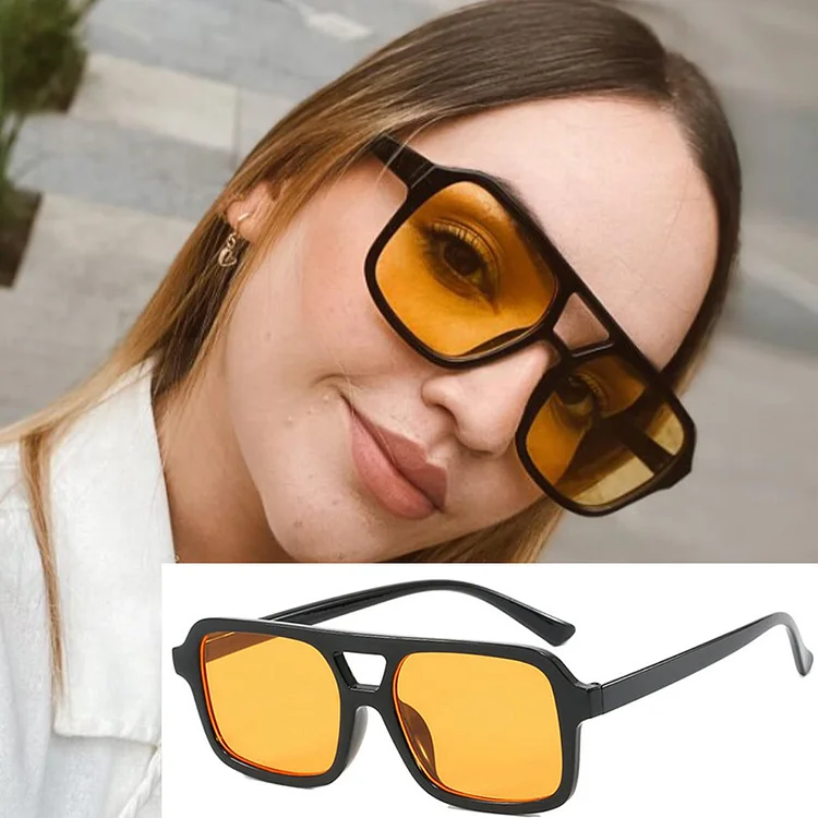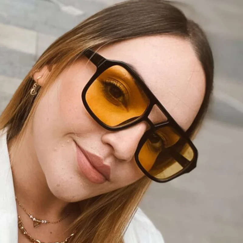 New Retro Double Bridge Sunglasses Big Frame Black Yellow Gradient Eyewear Vintage Square Sun Glasses Women Trending Shades UV40
